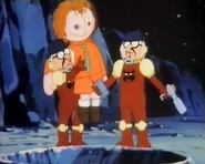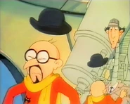 Null and Void placed a black box on a satellite, causing it to send all money transactions done by the Metro City Bank to Dr. Claw. They had another agent pose as a member of the repair crew at the Space Port so he could replace the oxygen tanks with crazy gas. That way, all attempts to remove the black box from the satellite would fail. Dr. Claw told them to sabotage all the other banks who used satellite transactions as well. They took a tentacled space pod into space to install a black box on the satellite for international bank transfers. After that, they planned to install a device to control the stock exchange. When Inspector Gadget came to investigate in a small shuttle of his own, Null and Void wanted to use the microwave transmissions to rearange his molecular structure. But Penny used her computer book to take control of the satellite and send the rays at Null and Void's pod instead. When Gadget took a spacewalk, they managed to grab him with the tentacles on their pod. But then Claw informed them that the stolen money was being returned by the computer. Null and Void tried to look into it, but saw a police ship arrive to save Gadget, and decided to flee with their vehicle as fast as they could.[3]
