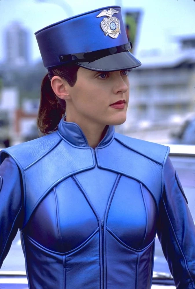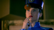 G2 has reddish-brown hair in a ponytail and she has blue eyes. She wears a blue policewoman hat, a cyan leathery uniform consisting of a tunic and trousers, and blue boots, which are part of her body as well. G2 wears a black belt with her insignia on it.