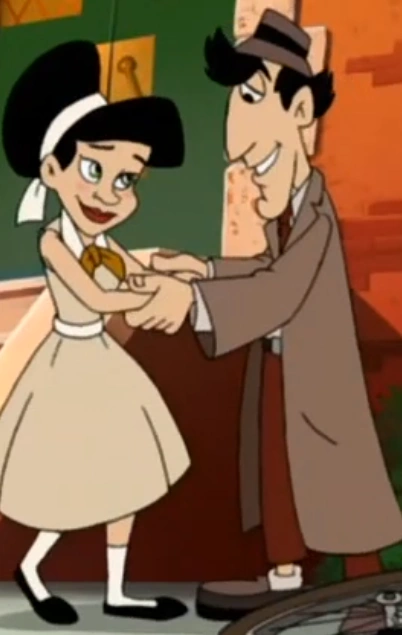 On the Gadgetinis series, he does not yet sport a mustache and wears a brown trench coat with a hat, and brown pants.