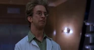 Kramer a is tall and lanky man with fuzzy blonde hair. He wears a white lab coat and various shirts, pants and shoes throughout the movie with round-framed glasses.