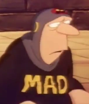 In Romanovia, Claw took control of the Gadgetmobile's radar and sent it to an inn, where Abdul led a trio of M.A.D. musicians in Bavarian outfits. Squirt was loading a cannonball into a tuba and Lenny had laughing gas in his concertina. Abdul took the lead, counting off for the others to start playing, and was also the first to make an attempt on Gadget's life, by blowing a dart through his clarinet. Gadget was saved by a waiter (Brain in disguise) who pushed him out of the way, causing the dart to hit a plate instead. Lenny then released the laughing gas from his instrument, which soon had the Inspector, the waiter and all three musicians in stitches. Abdul couldn't help himself, but slapped Squirt on the back, causing him to fire the cannonball from his tuba. It missed Gadget, but caused a hole in the wall. The waiter made a run for it, with Gadget hot on his heels, leaving the three M.A.D. musicans still laughing. They stopped laughing when Dr. Claw reprimanded them for their failure via videophone.[17]