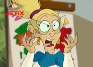 There is 1 adjective that could describe Miss Miffet best: scared. Throughout her view-time, she is seen in a constant state of fear & overwhelming worry with any given situation; mainly with those staring Gadget. With Miffet’s undergrown sensitization of being able to see a MAD agent in person - let alone their schemes, she can’t help but give that as a response out of pure confusion to anything energetic. But even so, she’s very cautious with her paranoia, being shown in “M.A.D.ster Game” Miffet had built an entire repellent system surrounding her office to have it so nobody touches any of her work supplies - all being marked with Gadget’s face on it. It’s topped off nicely with a helmet continently shaped to match her hairstyle! Even if seen as a bit dramatic it’s not used in case of a real emergency. Her office protection isn’t the only thing she keeps in mind for preparation, as shown in “Swap Team” she has a keen eye for agility once given the power; grabbing ahold of 2 MAD agents in means of keeping them in a bind, and muffling their speech with wooden planks in Gadget’s body. She’s bashful and friendly from an overall viewpoint, but in certain situations can she be in deep dread from her position in WOMP.