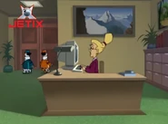 Miss Miffet doesn’t get to move around often in her workplace with her being a secretary, usually being seen in said setting unless called out. Her time spent in her office is so frequent Miffet even seems bored of it at times - besides her over-growing paranoia towards Gadget whenever he arrives for work. That’s the time she truly has “fun”, being thrown in whatever crazy stunt Gadget’s pulling off in the moment, similar to that of any other side character, or Nozzaire. Her name is even mispronounced similar to his in some cases.