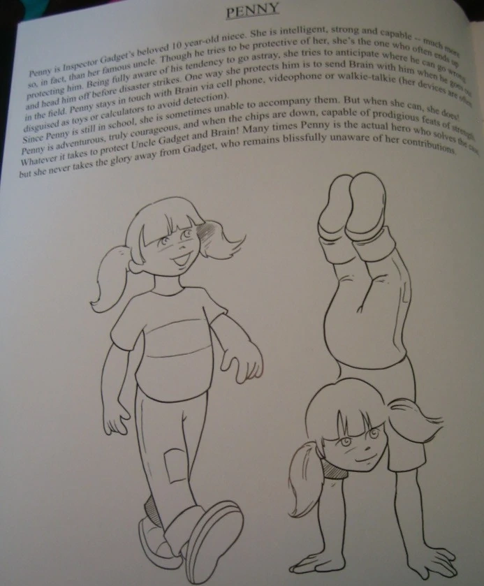 - According to the book Go-Go Gadget: The Creation of Inspector Gadget by Andy Heyward, Penny was originally "capable of prodigious feats of strength". While this feat was never kept in for any incarnation of Penny, who in the pilot episode ultimately destroys Dr. Claw's hideout through external means instead, it's possible that her temporarily adding super strength in the episode "Old Man of the Mountain" was used as a homage.