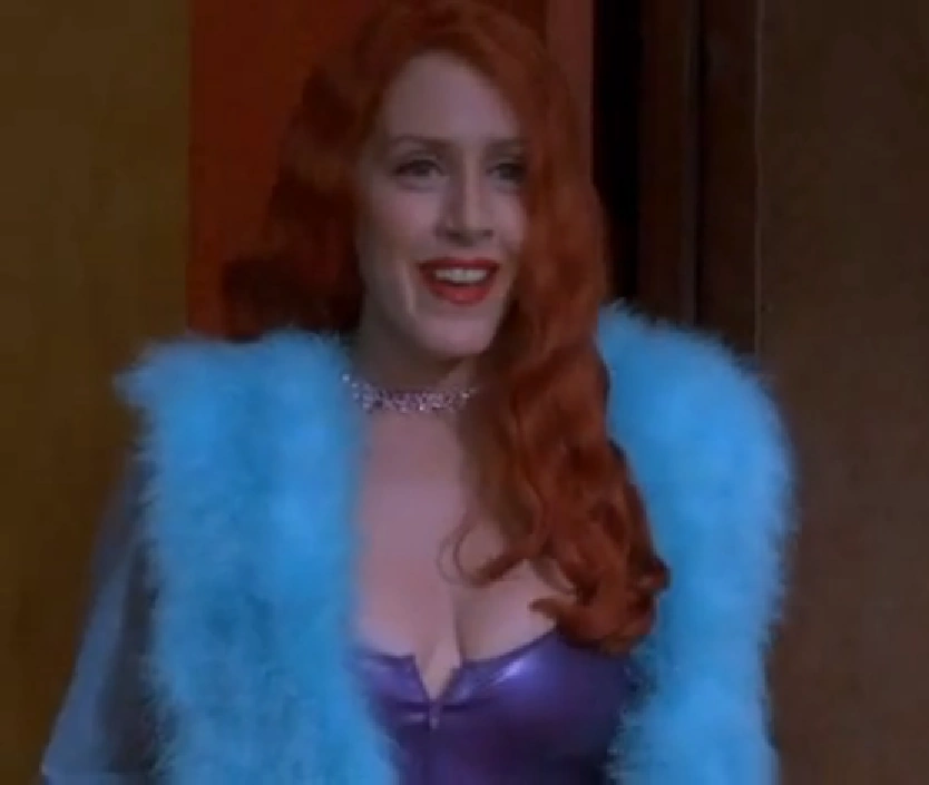 While her basic appearance is just like Brenda, there are some differences: She keeps her red hair long and has it resting on her chest. She wears a tight sleeveless purple catsuit that looks like rubber, and she wears a diamond necklace that was given to her by Claw. RoboBrenda wears a long blue fur-lined sheer blue jacket to complete the look.