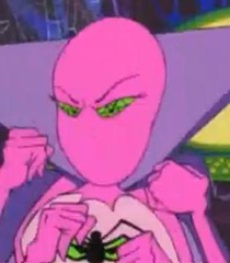 Spydra is the main antagonist of Gadget Boy & Heather. She is a 6-armed villainess in a pink spider-themed costume that hides her face with a mask. Her face is so hideous that anyone who sees her unmasked will turn to stone from the shock.