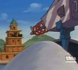 Meanwhile, Penny finds a temple which is Claw's hideout, where Professor Lasre is working on the laser-powered up by the ruby. Mistaking the fake ruby on Brain's disguise for the real one, Gadget chases Brain to the temple. Claw's Robot Monks capture Gadget and Claw fires the laser at the inspector, only for Penny to override the monk robots' control, saving her uncle.